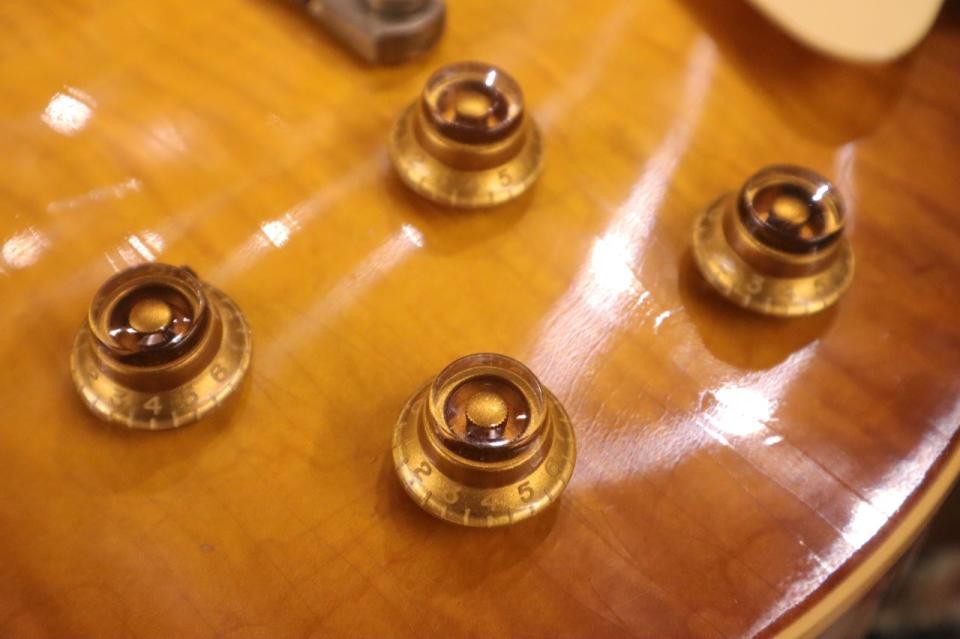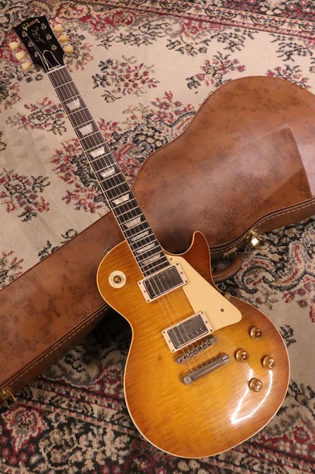 高密度なウェザーチェック、細かな傷や部分的な塗装の剥げ、ハードウェアの錆くすみ等、程良い使用感や経年変化を再現したLight Agedの1959 Les Paul Standard Reissueです。