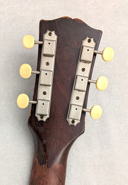 長年の演奏により、ネック裏の塗装には剥がれが見られます。