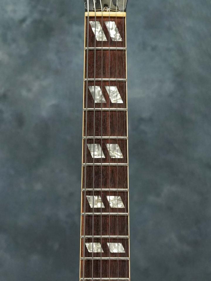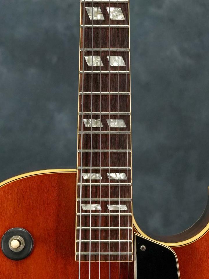 1960年代中期~1970年代中期は多くのGibson製品で所謂「ナローネック」と呼ばれる細身なネックになり、ES-175も他モデルと同じく1965年頃からナローネックが採用されるものの1970年頃には他モデルに先駆けてレギュラーネック幅に戻されており、本器も3-Pieceマホガニーのレギュラーネックで細身なネックが苦手な方にも弾き易いネック幅です。