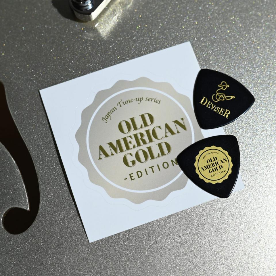 購入特典として、「OLD AMERICAN GOLD」ロゴ入りのオリジナルピック×2枚とステッカーが付属。