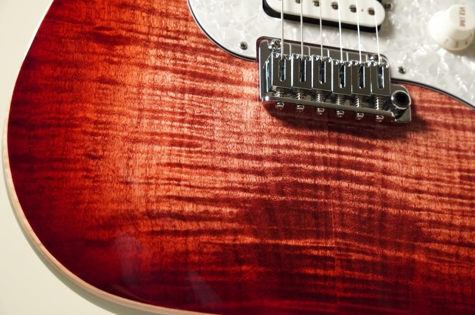 トップのメイプルは綺麗な杢がびっしりと確認でき、豪華で映えるルックスです。