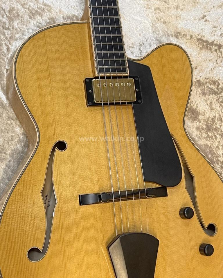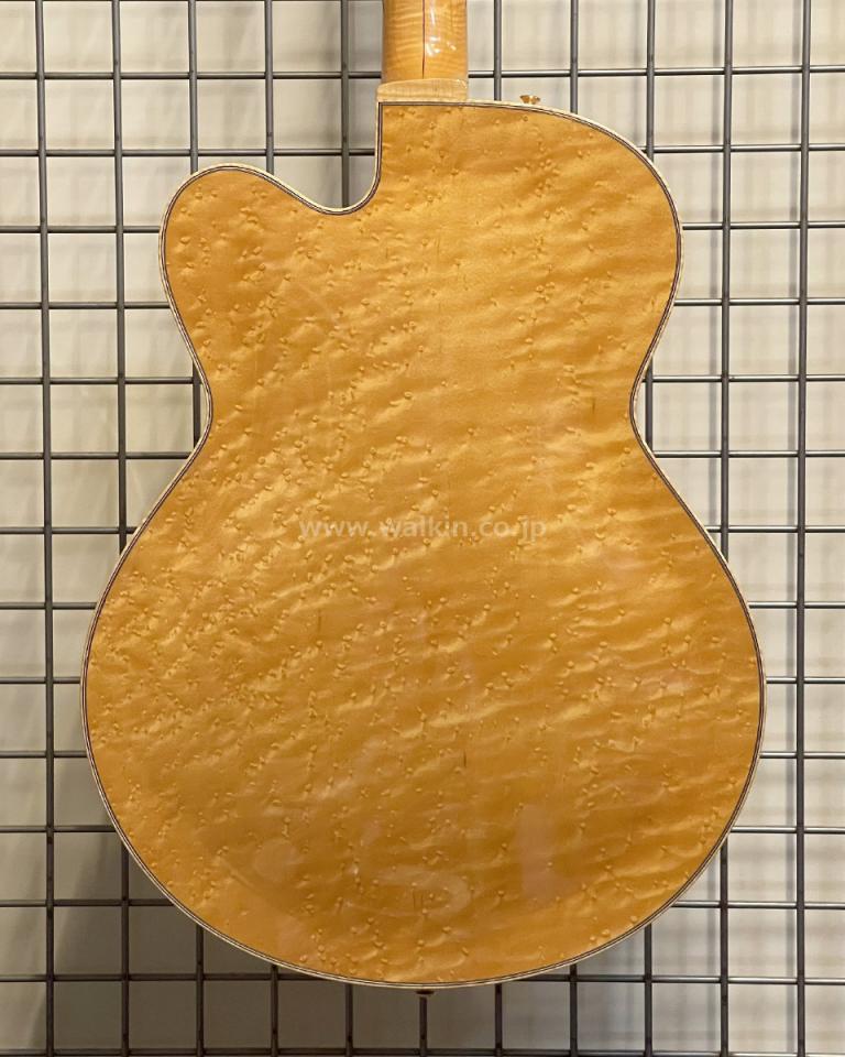 人気の日本人ルシアー、熊野正(クマノマサシ)氏の製作する、Kumano Guitars。こちらは16インチ幅エレクトリック・アーチトップ・モデルの2011年製極上USEDです!熊野氏自らにより細部に渡り一切の妥協無く丁寧に組み上げられたこちらの1本、ボディ・サイド&バックにはオプションとなるバーズアイ・メイプルが使用され、全体的に塗装面のウェザーチェックこそ見られるものの、目立つ外傷がほぼ見受けられない極上コンディション!また当店入荷後に必要な調整ならびにセットアップを完了しておりますので、プレイアビリティも完調です。サウンド、演奏性、共に優れたエレクトリック・アーチトップをお探しだった方は、是非一度お試し下さいませ!非常に入荷希少なモデルとなりますので、この機会を是非お見逃しなく!