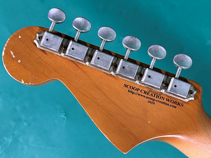 SCOOP CREATION WORKSは、大阪・吹田市に工房を構える日本のハンドメイド・ギター/ベース製作工房です。工房はほぼ一人で運営されており、製作者の辻本氏により一本一本丁寧な手作業で仕上げられる高いクオリティのエイジド加工や薄いラッカー塗装によるヴィンテージ感とトーンへのこだわりが魅力のメーカーです。使用する木材やパーツは国内外から厳選したものだけを使い、ボディ材には特に軽量なものが選ばれています。