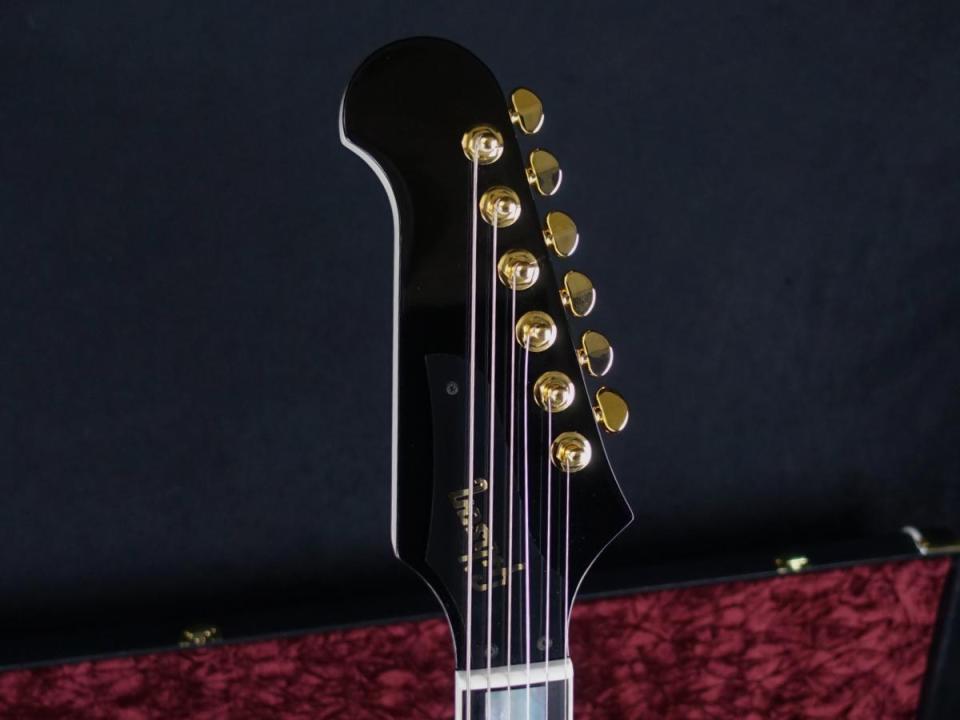 ファイアーバード・カスタムは、ギブソンのモデルの中でも最も視覚的な魅力に溢れた、唯一無二のボディデザインを誇りつつも、マルチプライ・バインディング、エボニー指板、パール・ブロック・インレイ、ゴールド・ハードウェアといったカスタムの意匠を大胆に取り入れています。