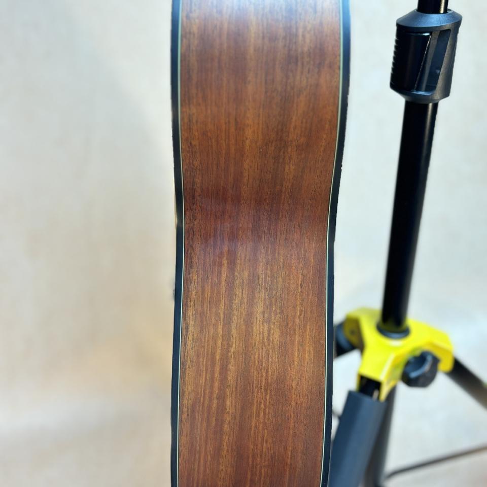 シトカスプルース単板トップ、マホガニー単板サイド・バックが温かみある音色を生み出します。