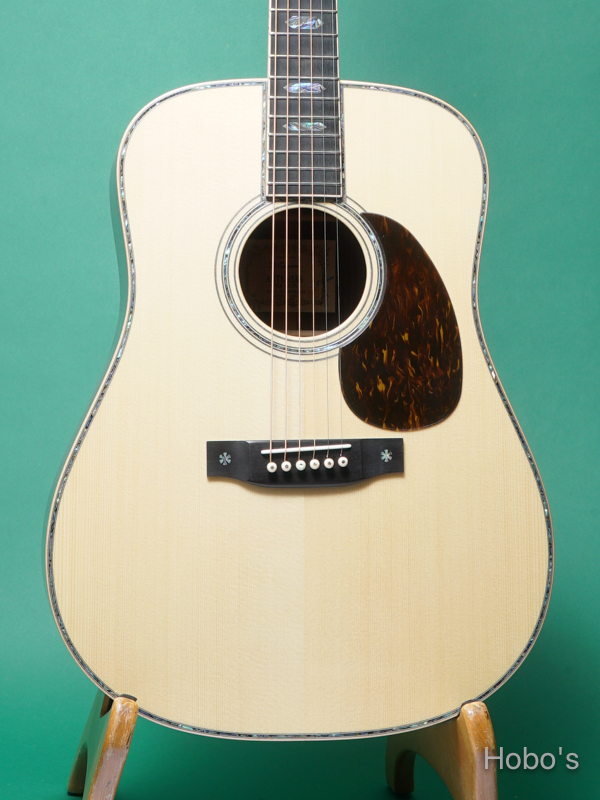 本ギターは経験豊富なアストリアスクラフトマンが、時間と手間を惜しまず製作する最高級モデルで、年間に数本程度しか製作されない究極の逸品です。表板には貴重なジャーマン・スプルース、側・裏板にはインディアン・ローズウッドと、それぞれ厳選されたフラッグシップモデルに相応しい最高級材が採用されております。作り込みの良さからなるきらびやかなサウンドは直系機種「D.エンブレム」と比較して、はじけるような低音域と艶やかな高音域は共通し、各弦より太く重厚な音色に仕上がっております。またスタイル45の絢爛豪華なインレイワークとメイプルによるウッド・バインディングからなる上品な外観美も一入。経験豊富なアストリアスクラフトマンが、時間と手間を惜しまず製作したこの最高級品は、「エンペラー」のネーミングに相応しいまさに究極のギター。ハカランダのヘッドプレートに燦然と輝くトーチインレイや胴全面を彩るアバロントリムも相俟って、巧みな作り込みからなる最高級ハンドクラフトギターの魅力を存分にご堪能して頂けることでしょう。