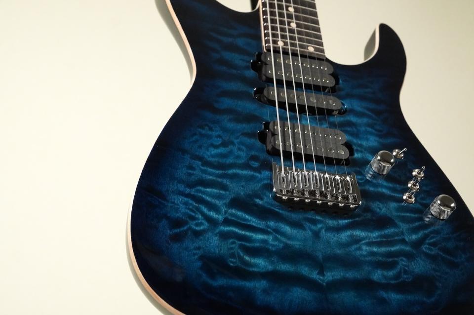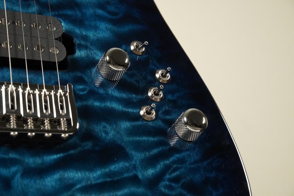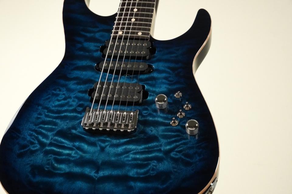 ボディはトップにキルトメイプル、バックにバスウッドを使用した構造となっており、昨今のモダンギターで人気のある組み合わせはサウンドバランスも非常に良い印象です。