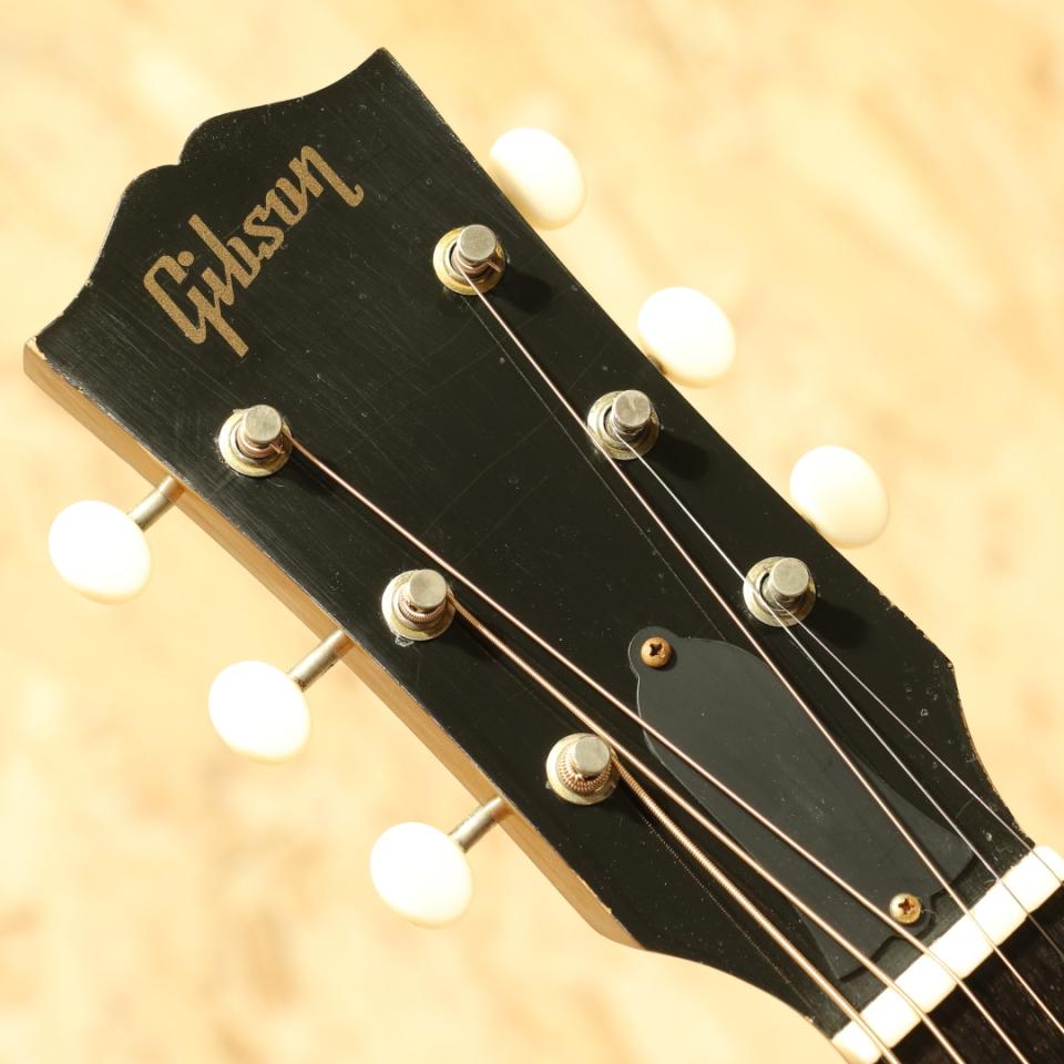 "The Workhorse" の愛称で信頼されるベストセラー・モデル。1942年の登場以来、ギブソン・ラウンド・ショルダー・ラインナップの中心的役割を担い続ける”J-45”。基本的なスタイルは継承されつつも時代に合わせたマイナーチェンジを繰り返し、永遠の定番として君臨し続けてきました。本器は「マーフィー・ラボ」アコースティックシリーズから”1955 J-45 Light Aged Vintage Sunburst Light Aged”。サーマリーエイジドシトカスプルーストップ、マホガニーサイドバック、マホガニーネック、ローズウッド指板&ブリッジ、3連オープンバック・エイジドペグ、ヴィンテージサンバーストカラー。J-45の歴史の中でも指板を1フレット分延長した20フレットの誕生、従来のスモールピックガードからシン・ポインテッド・ラージピックガードへと変遷した1955年の仕様を再現。全体に施されたライトエイジド加工で、数十年の年月の経年をシュミレート。実際に年月を経てきたと錯覚するような驚くほど自然な仕上がり、ボディはもちろんペグのネジ一つから付属品のストラップピンにいたるまで緻密に施されており、ギブソン社の技術の高さには感嘆の息が漏れる程です。表板にはエイジング加工"サーマリー・エイジド"処理を施したシトカスプルースを使用。豊かなレンジを持ち軽やかでドライなサウンド、音の立ち上がりや反応の速さにも優れています。弾き込んだかのような角の取れたトーンには新品であることを忘れてしまう程です。また、エイジド加工は音質にも影響を与え、もたつきの無いドライなトーン、そして何よりも爆発力のある響き、音の情報量も多くレンジ感のやや広い辺りも良く再現されています。現行品"J-45"の中でもまさに最高峰、最上位のサウンド。是非お手元でご体感下さいませ。オリジナルハードケースが付属します。