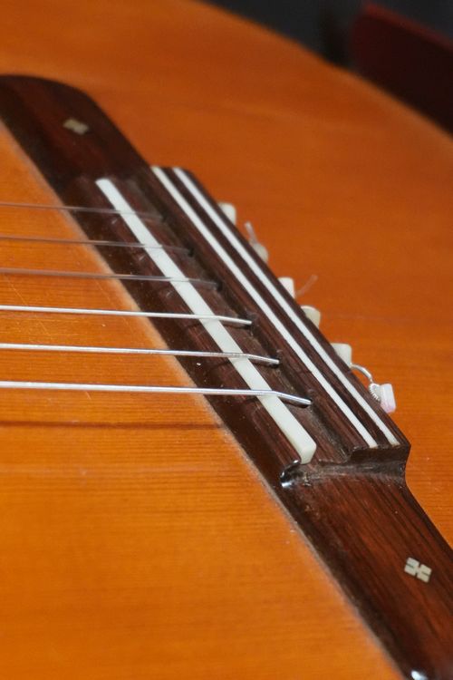 ネック幅は現代の主流との比較では狭く、また現オーナー様の好みにより弦高が極限まで下げた設定となっております。