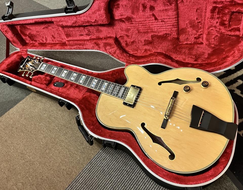 シンプルな1ピックアップにブロンドフィニッシュという仕様はパット・メセニーが使っていたES-175を彷彿とさせます。ラミネートボディを採用したこのモデルはハウリングにも強く、ステージでの演奏性もバツグンです。