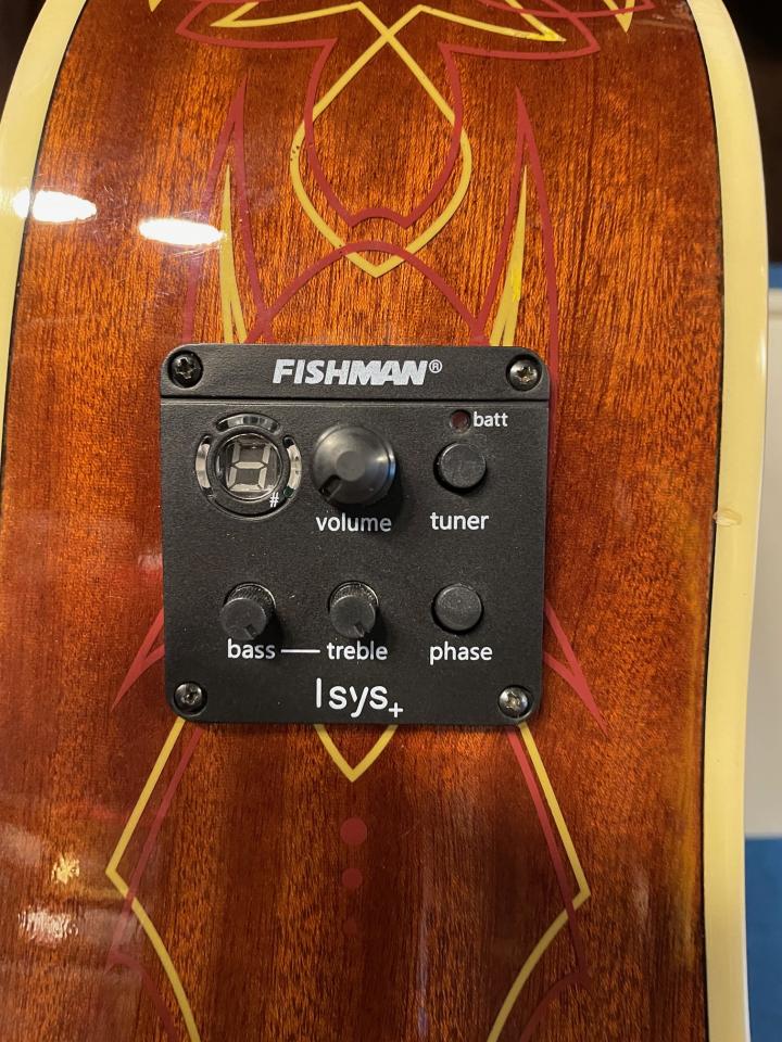 FenderのSonoran SCEをベースにDuaneがデザインしたグラフィックが目を引くド派手なエレアコです。
