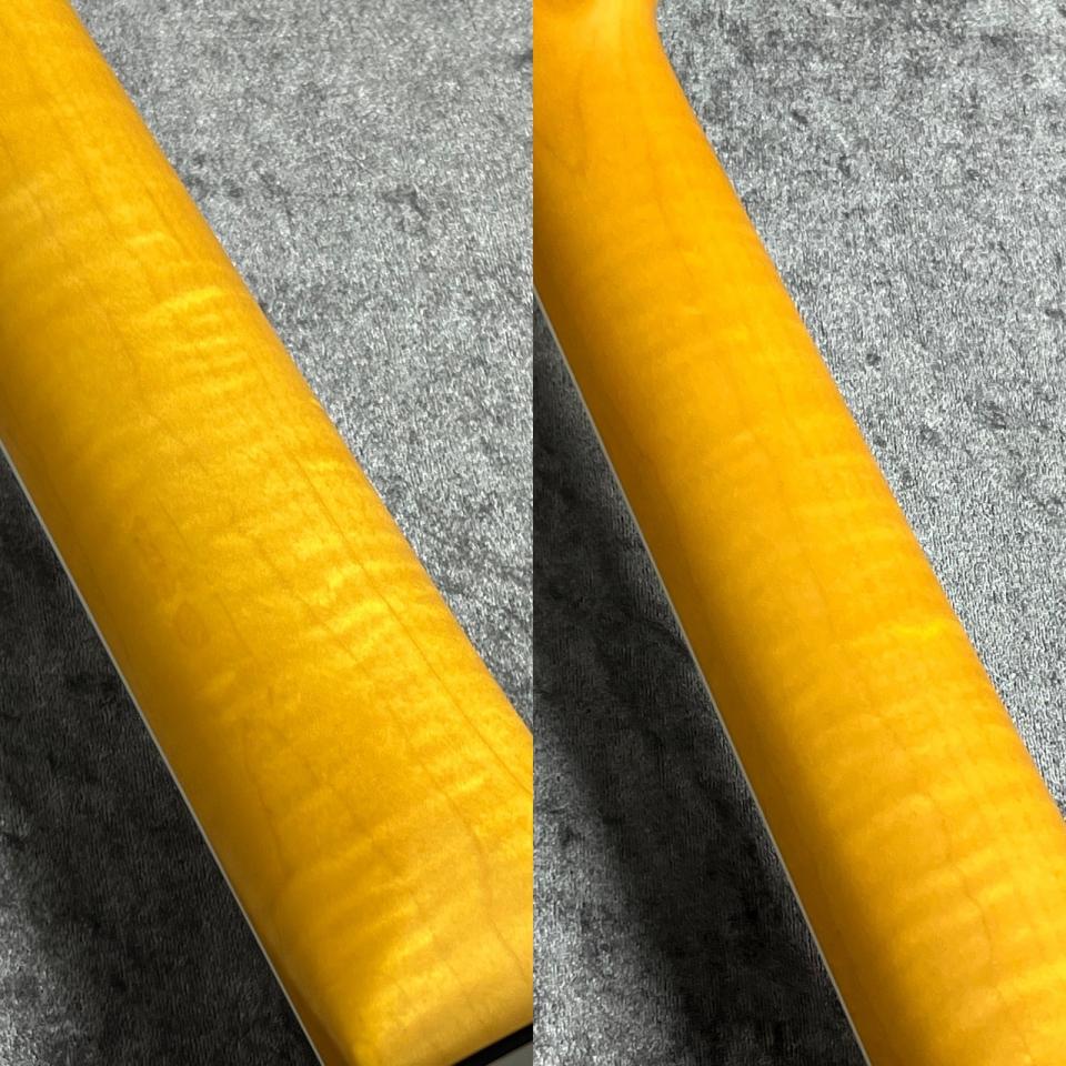 ネック材: 3A Flame Maple(Satin Nitrocellulose Lacquer with Gloss Matching Headstock)