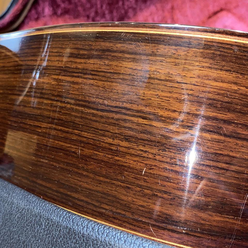 目視の判断ですが、ボディはスプルーストップにサイド/バックはローズウッドを採用したオール単板ボディ。
