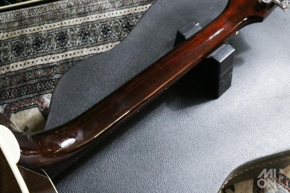 特徴的なヘッドロゴにシンプルなドットインレイ、全体の外観としては豪華すぎず嫌味がありません。弦高も現在は標準的、弾きやすいコンディションを保っております。