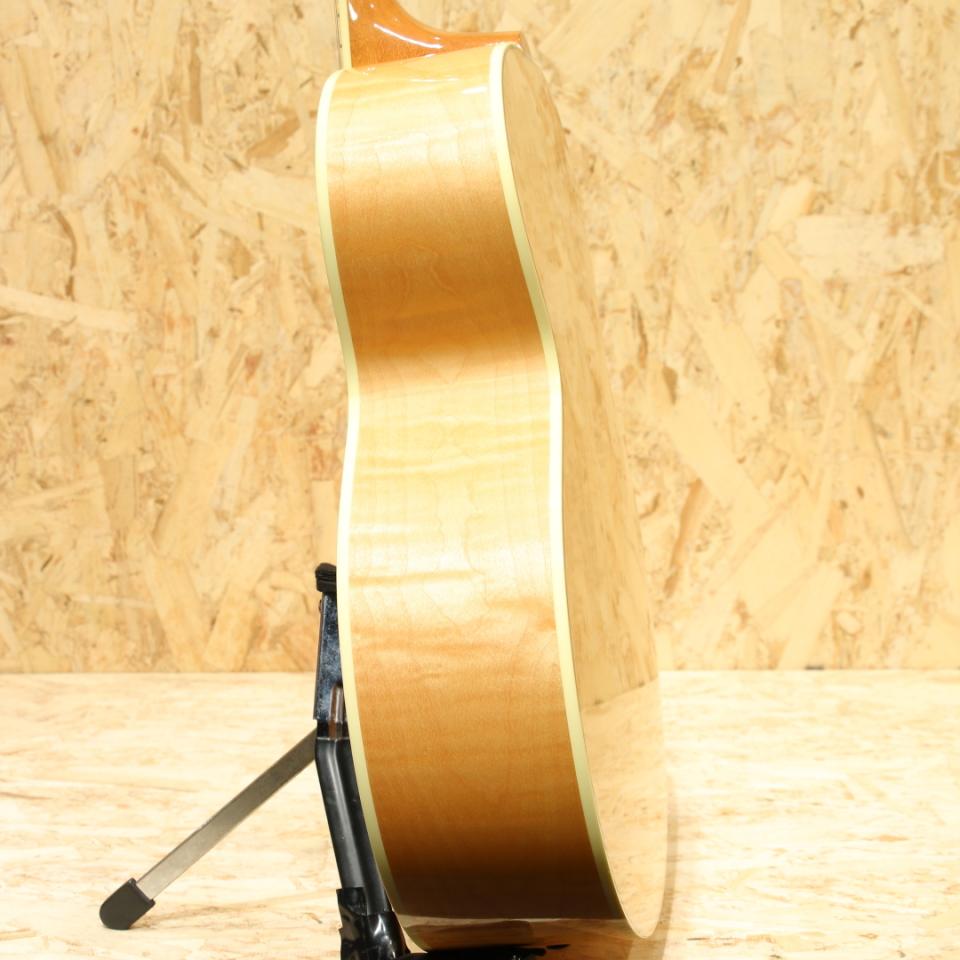 J-200よりも手の届く価格として1951年に発表されましたが当時はあまり注目をされず1959年までしか製作されていないJ-185。ギブソンモンタナ工場職人曰く「ピアノの様なサウンド・バランス」と絶賛されるほどサウンドバランスに定評があります。エヴァリーブラザーズがこのサイズのギターを使用していた事でも有名で、現在では多くのアーティストからも支持されており、J-200と比べれば小ぶりで抱えやすく低域から高域までのバランスが非常に良く、フィンガースタイル、フラット・ピッキング、リズム、リードなど多彩なジャンルでお使いいただけます。本器は伝統的なルックスとモダンな演奏性を兼ね備えたオリジナルシリーズの2021年製USED品。目の詰まったシトカスプルーストップ、フレイムメイプルサイド&バック、マホガニーネック、ローズウッド指板&ブリッジ、キーストーンペグ、スキャロップドXブレイシング、L.R.Baggs社Element VTC搭載。その小柄なボディからは想像もつかないボリューム、音の抜けや粒立ちも良く、澄んだクリアな音色そしたヴィンテージライクなサウンドが特徴的です。ブリッジ両端にマザーオブパールのマルタクロスインレイ、指板にはパラレログラムインレイマシンヘッドにはキーストーンタイプのペグがが施され、ルックスもヴィンテージ感漂う仕上げです。安定したサウンド、扱いやすさで定評のL.R.Baggs Element VTCが搭載。シンプルな操作性、様々なシチュエーションで安定した温かみのあるアコースティックなラインサウンドを出力します。ステージ、レコーディングなどにも即戦力としてお使いいただけます。使用感はほとんど感じず、新品と見紛うような綺麗さが保たれた1本。現在本モデルのアンティークナチュラルカラーは生産終了となっている為、お探しだった方はぜひお早めにご検討ください。オリジナルハードケースが付属します。
