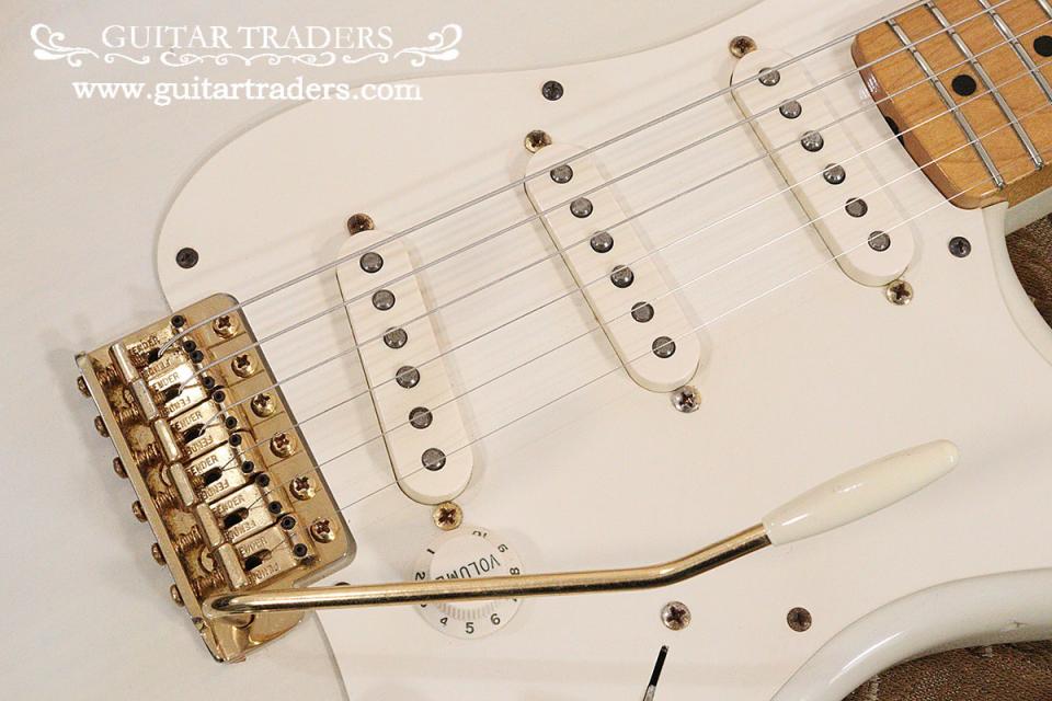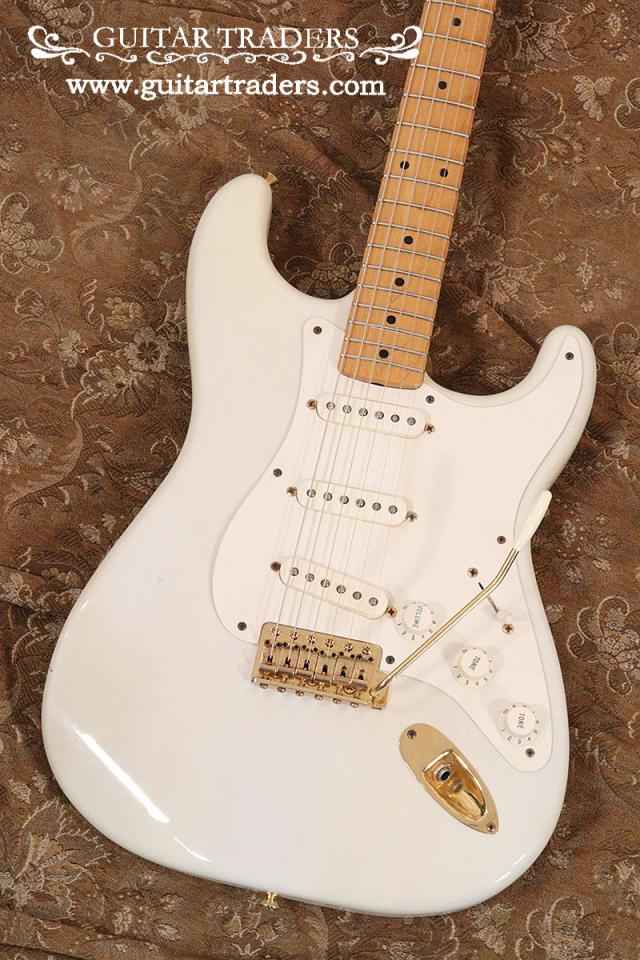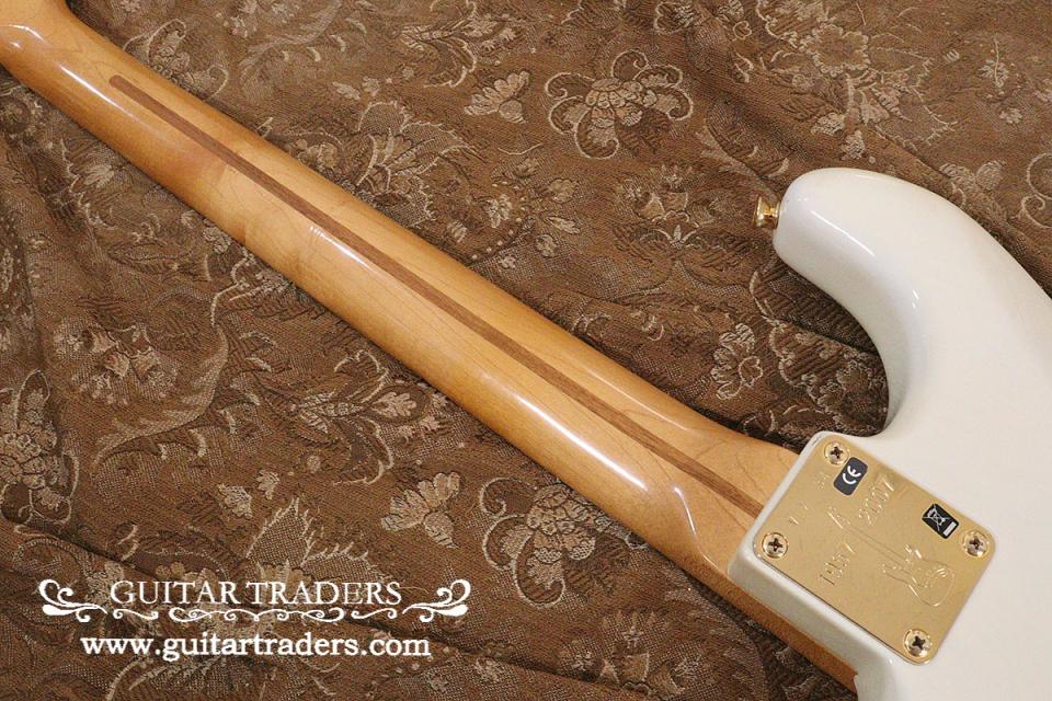 ボディ材にはアルダー材を使用した、ブロンド・フィニッシュに、ゴールド・ハードウエアと、オリジナル・ヴィンテージでは通称“Mary Kay” ストラトキャスターと呼ばれた57年製のストラトキャスターから50年を記念して発売されたモデルです