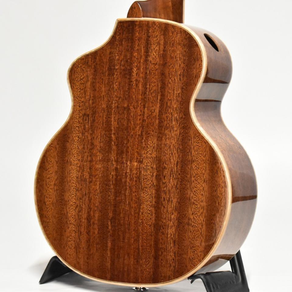 本機は美しいマホガニー材の総単板ボディ。
