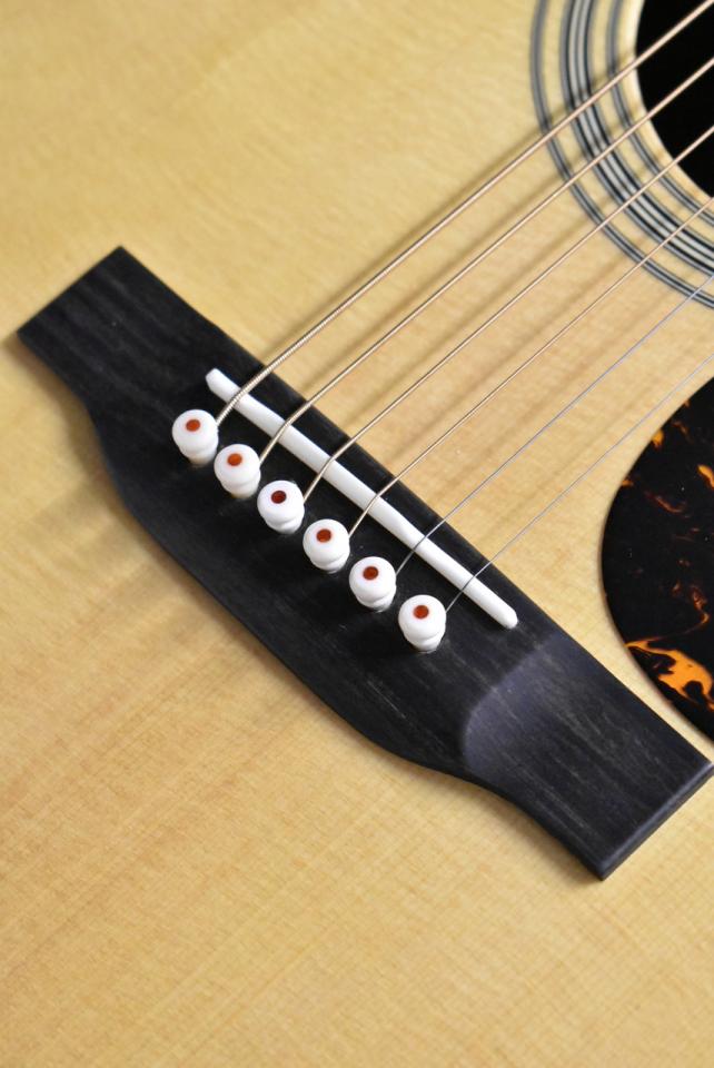 新しい” GE “モダンベリーブリッジは滑らかな曲線デザインとなり、モデルによってボーンまたはエボニー製のブリッジピンが使われています。