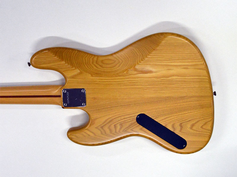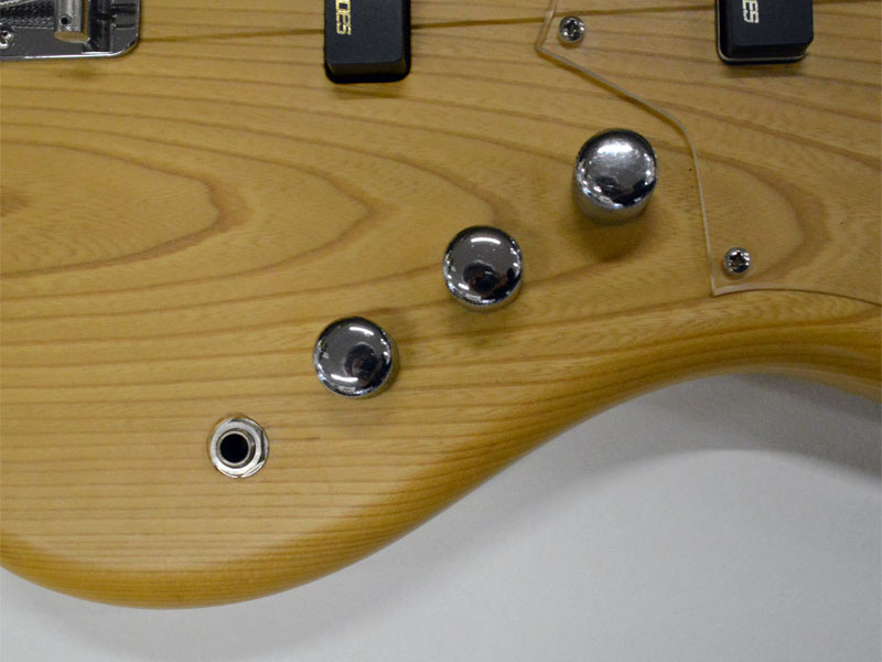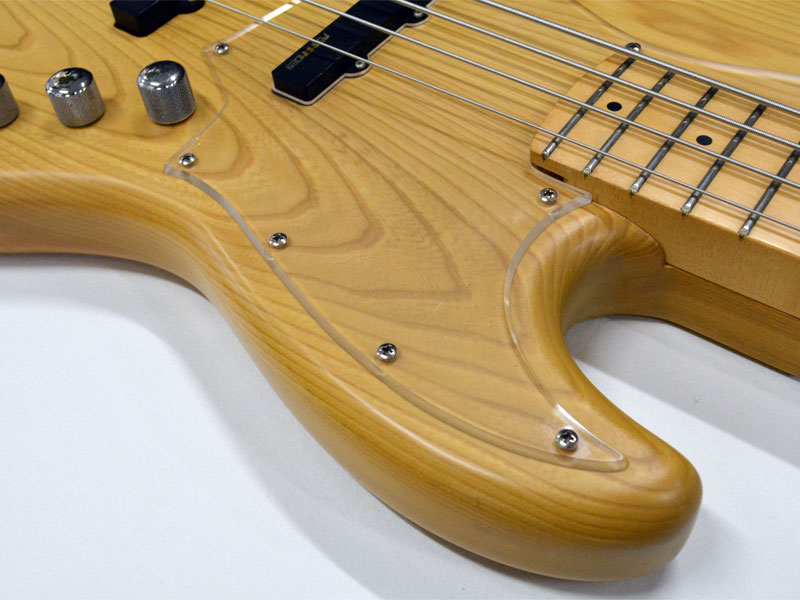 ナチュラルカラーのボディにアクリル製のクリア・ピックガード、さらにコントロールはボディに直付けで、どこか高級コンポーネント・ベースのような雰囲気のベースです。