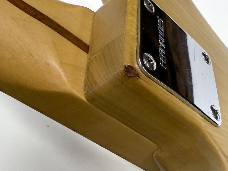 経年変化や使用による細かなキズや小さな打ち傷(ボディのネックジョイント部分の角が少し欠けている個所もございます)、経年による金属パーツの若干のくすみ、等があります。