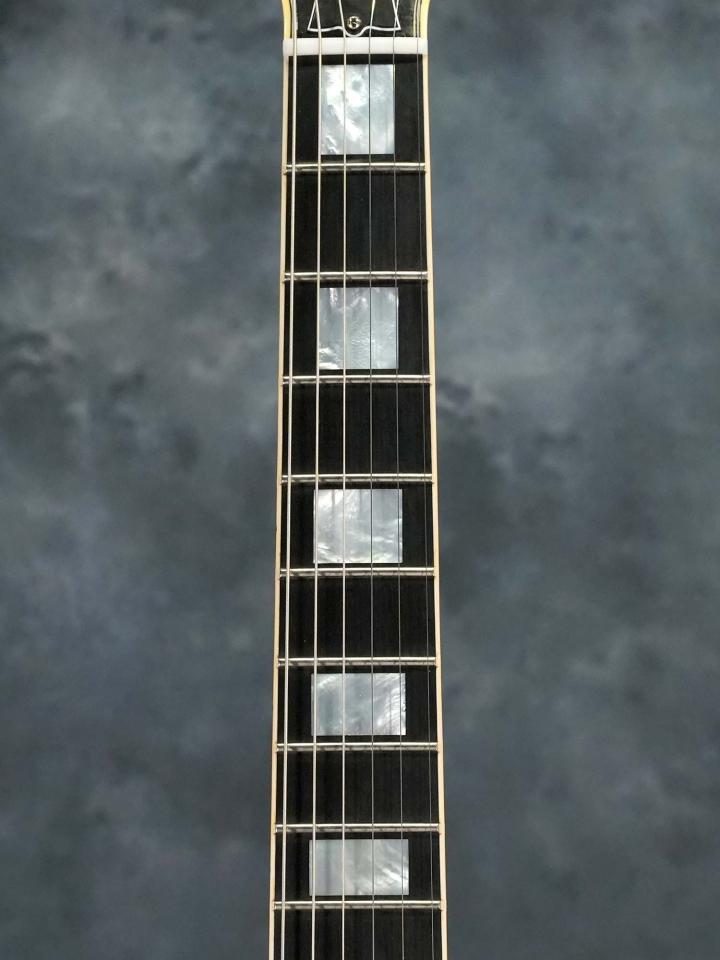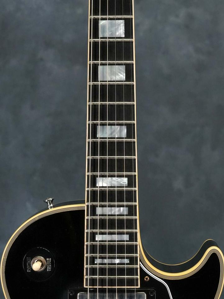 ブラック×ゴールドの高級感のあるルックスとも異なり、Les Paul Customならではのマルチレイヤーのバインディングにブラックフィニッシュ×シルバーのニッケルハードウェアの端正なルックスが格好良く、しっかり使える上質かつクールなレスポールカスタムをお探しの方にオススメの一本です。