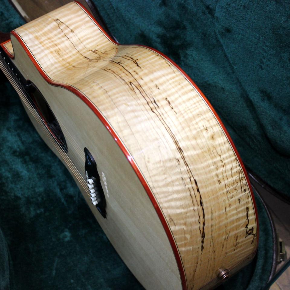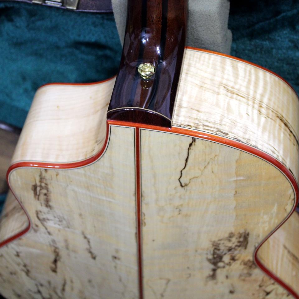 バック&サイドにスポルテッド・メイプルの単板を使用しています。