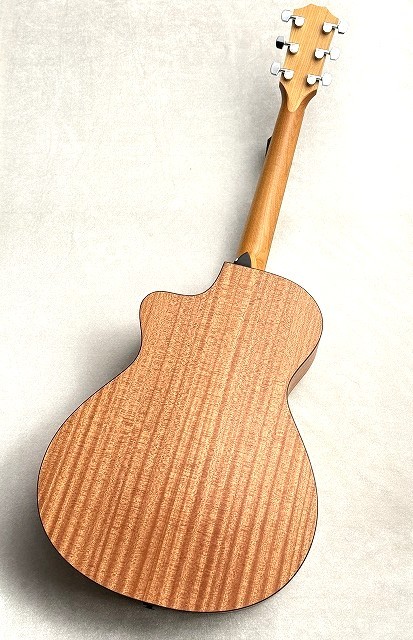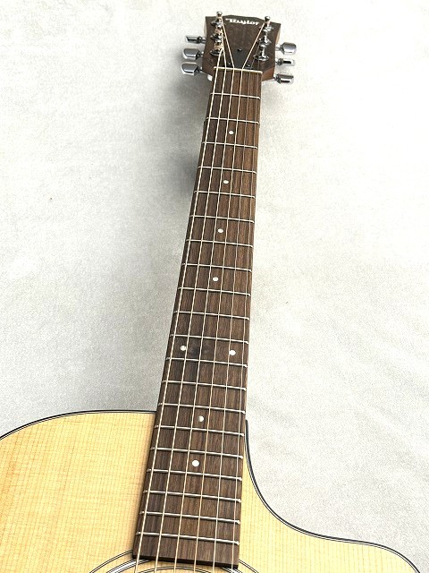 Taylorの中でも小振りなサイズ感を誇るグランドコンサートボディ。小さいボディで高水準の演奏性が確保されており、サウンドの立ち上がりも速いのが特徴です。