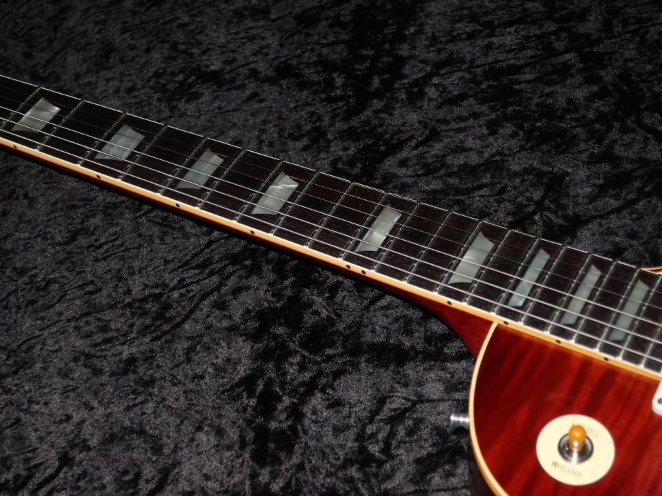 2025年4月 Gibson Brands Partner Experience Japan Dealer in Nashvilleにて現地選定材を使用した超リアルなトップ材。ネックシェイプは’59 LP “Cシェイプ”とフレットは’59 LPの"Medium Jumbo"、PUは今回オーダーに際して特別仕様の"Custombucker Alnico 2 “ アンポッテド“を搭載。キャビティ内のコントロール・ホットはヴィンテージのカーブを追及した500KΩポットにバンブルビー・コンデンサーもよりヴィンテージに近づけたものを搭載、指板とネックとボディーはハイドグルー(ニカワ)で接着されております。