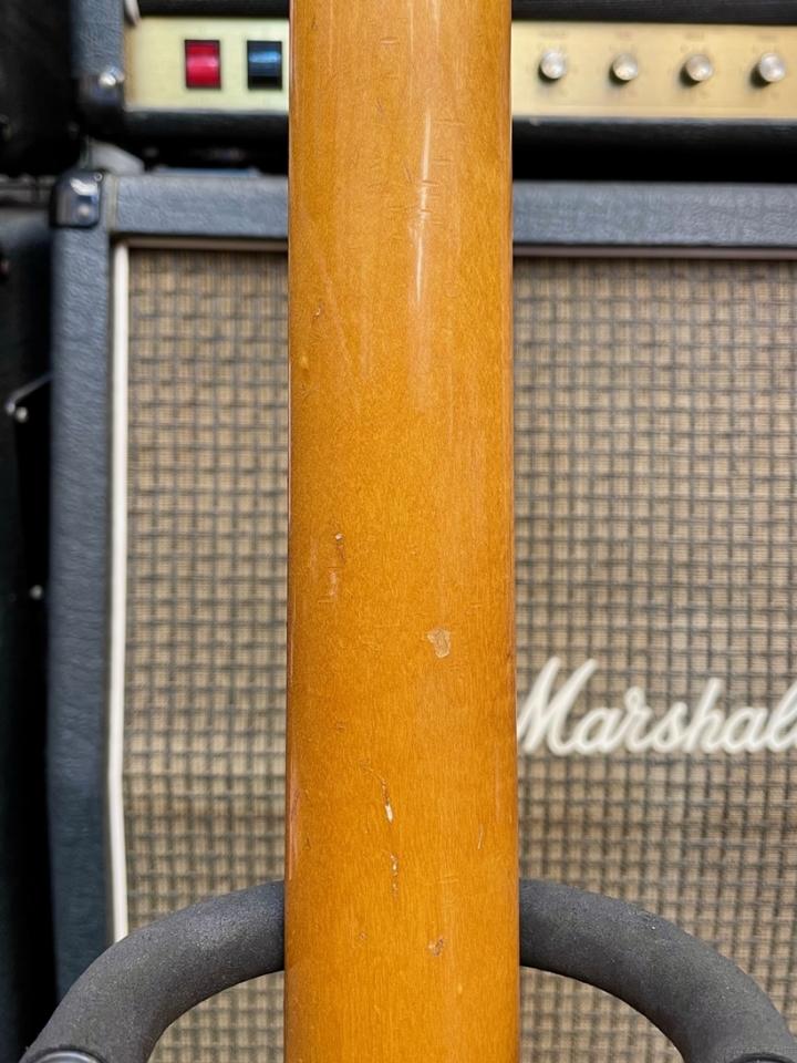 コンディションは経年や使用に伴うスリキズや打痕、パーツ類のくすみやサビ、メッキ剥がれ、焼け、一部塗装にひびや欠け、剥がれ、焼けの他ヘッド部に焦げ跡がございますがフレットはリフレットが施され、トラスロッドの効きも良好な即戦力としてこれからもしっかりとお使い頂ける良好なコンディション。