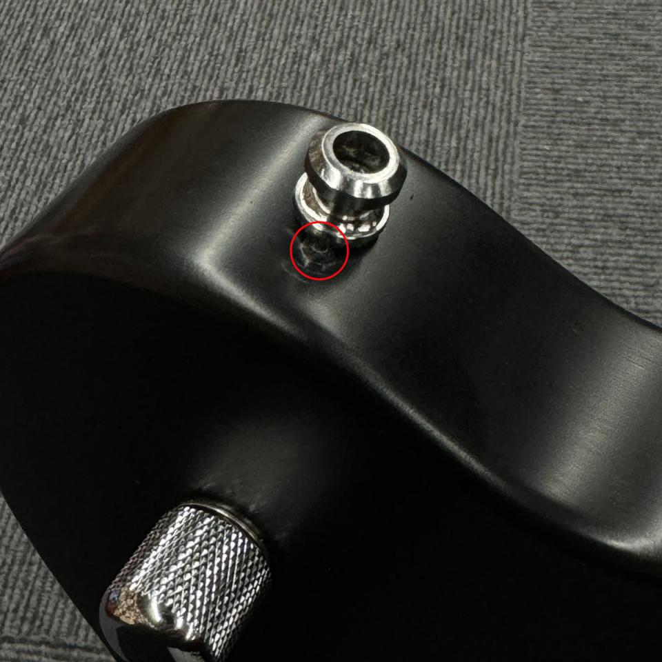 ブラックフィニッシュなので目立ちにくいですが、ストラップピン穴を開け直した形跡があります。