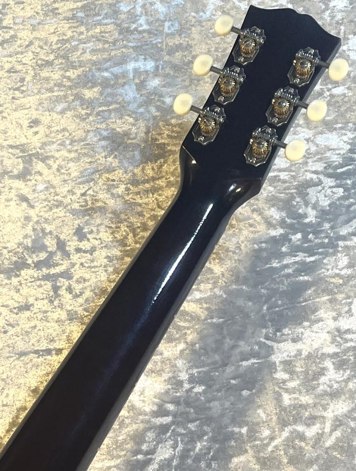 1942年のヴィンテージを再現している本器は、ピックガードに初期の個体にしか見られないファイアーストライプス柄のティアドロップを装着、フレット数は当時と同じく19フレット仕様で、ブリッジもダウンベリーブリッジ&ロングサドルを採用しております。ヘッドもOnly a Gibson is Good Enoughのバナーを纏いスクリプトロゴ。