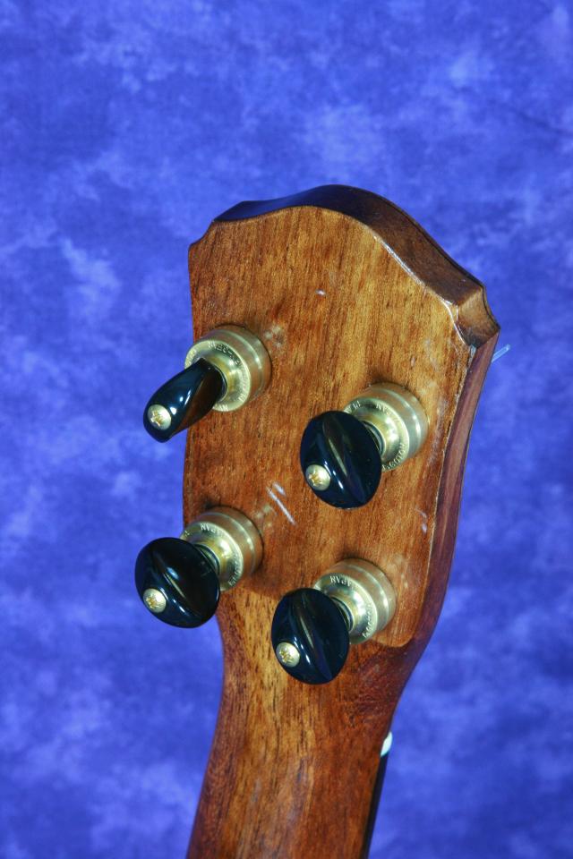 このウクレレの仕様は、表面板はコア単板/サイド・バックはコア単板/ネックはマホガニー/指板は黒檀/糸巻きはゴトー社製のPLANETARY GEARとなっております。ブリッジとヘッドの突き板はコアを使用しております。14フレットジョイントで、指板と指板脇には5F・7F・10F・12Fにポジションマークが付いています。