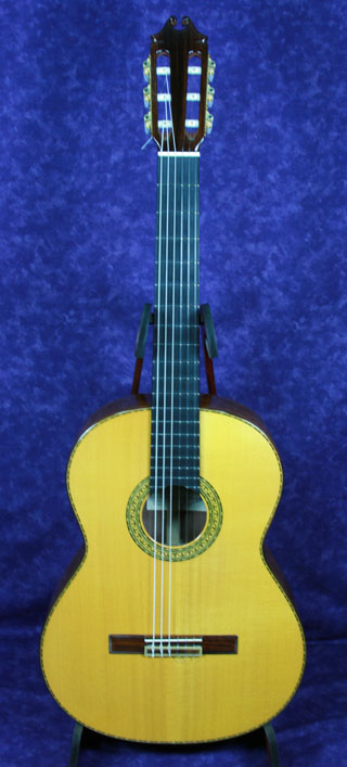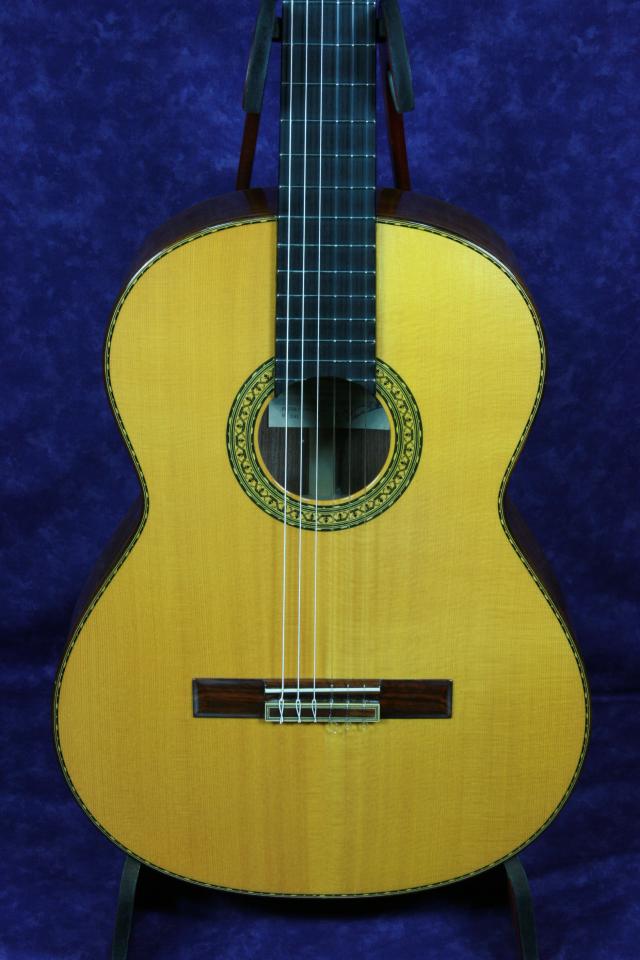 このギターはスペイン/ヴァレンシアで製作され、表面板がジャーマンスプルース、横板・裏板がローズウッドのオール単板仕様となっております。