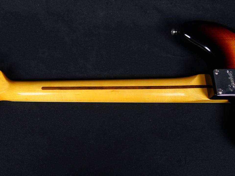 バインディングが施されたネック周りはスリムで快適な"C"シェイプグリップ、やや緩やかな9.5インチ指板ラディアスに22F仕様のナロートールフレットを採用しております。
