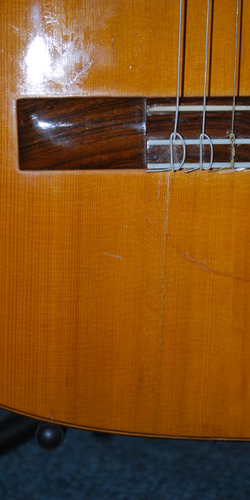 本器の状態としては、年代相応の弾き傷&打痕、ブリッジ下(ちょうど6弦の延長線上にある)にクラック補修がある。