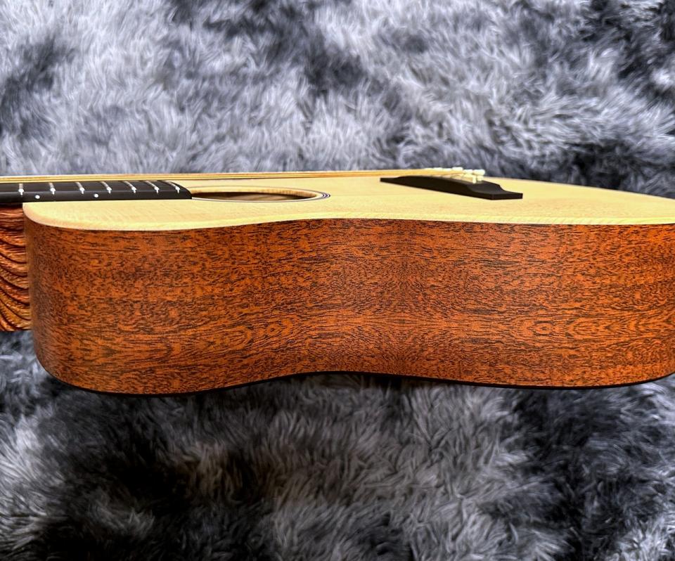 【メーカーHPより】トップがシトカ・スプルースでサイド&バックがハイプレッシャー・ラミネイトのLX1は、実際のスプルース材ということもあり、LXMより高音の伸びが美しい。