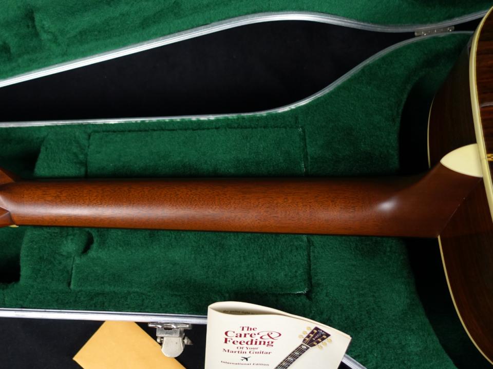 現行型番の"D-28 Standard"と比較すると、シャーラータイプのロトマチックペグ、ボディトップのクリア仕上げ、約42.9mmのナット幅など、また一味違ったスペックとなっています。