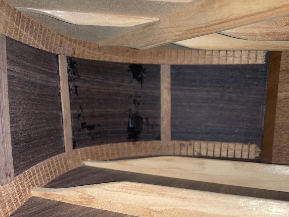 ・1弦側ボディサイドのエンド部付近に"ボディ内部の割れ止め増設"並びに"オーバーラッカー"を伴うクラック補修