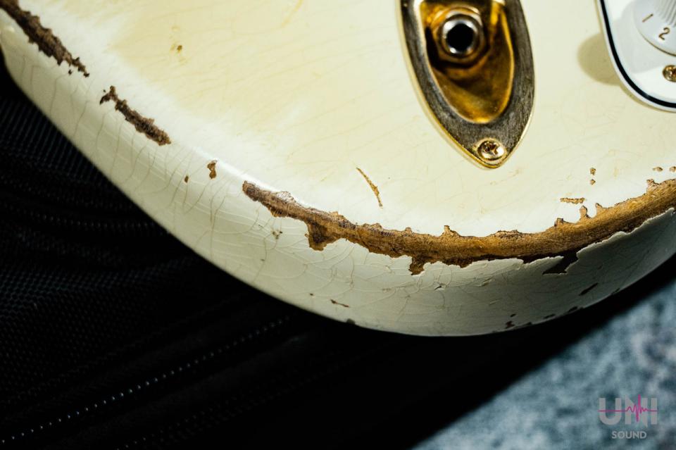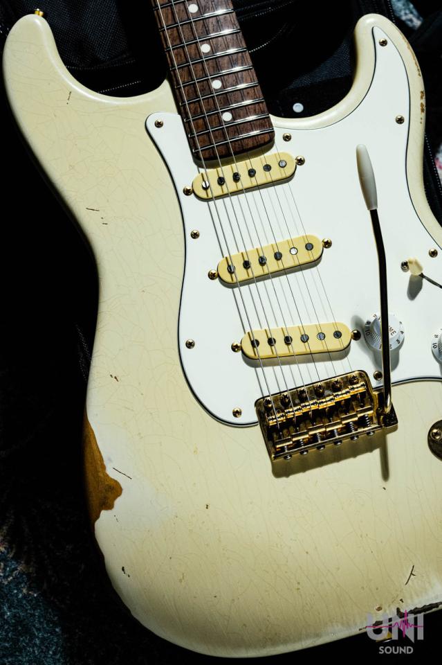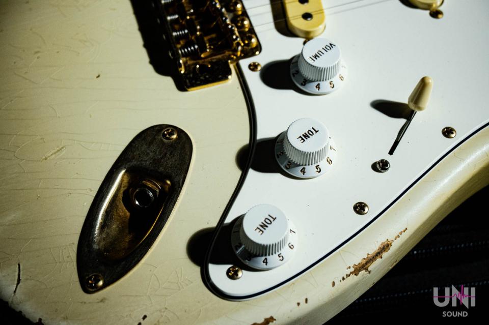 3弦が巻き弦からプレーン弦に変わっていたこの時代の仕様にあわせて3弦ポールピースの高さを上げてローズウッド指板のストラトキャスターらしいバランスに仕上がっています。