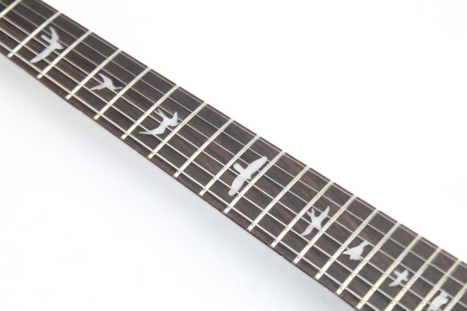 SE Custom 24は、マホガニー・バック、メイプル・トップのボディ、Wide Thinカーブのメイプル・ネック、ローズウッド指板、バード・インレイを合わせ、PRSデザインのトレモロ・ブリッジを装備。