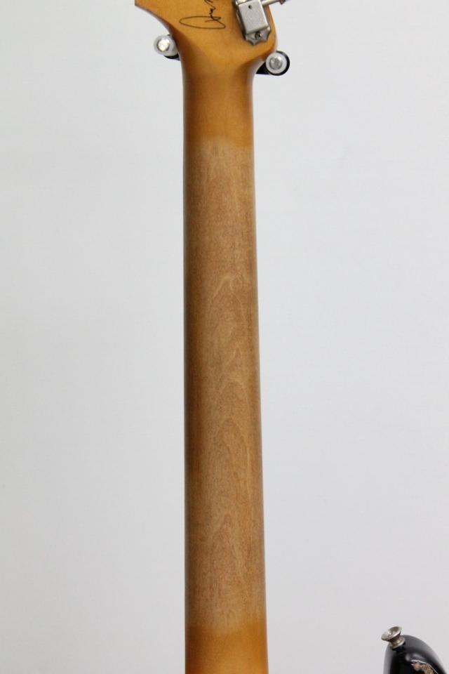 伝統的なアルダーボディには手作業によるラッカーフィニッシュを施し、30年にわたるツアーやステージパフォーマンスで愛器についた味わい深い使用痕を再現しています。カスタムショップを除けばここまでの豪快なレリック加工は珍しく、見ているだけでも楽しめるデザイン。