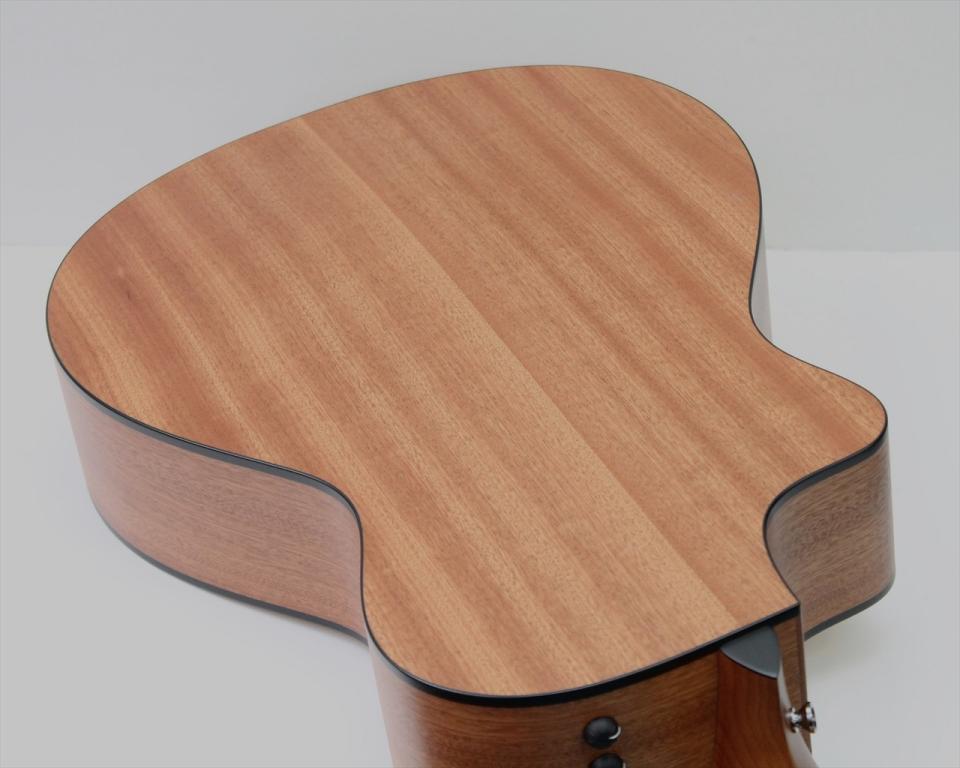 トップ材にトレファイド加工をされたスプルース単板、サイドとバック材にサペリを採用。