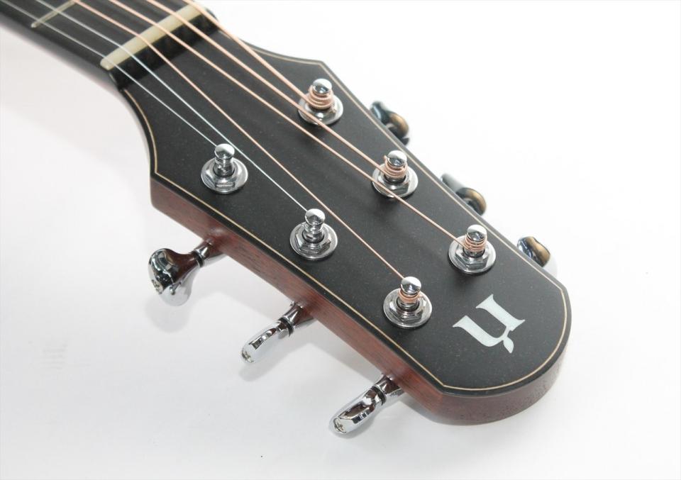 このギターはセレクトボーンのナットとサドルとHPLエボニーブリッジピンを使用しており、細部にわたる品質のこだわりが感じられます。