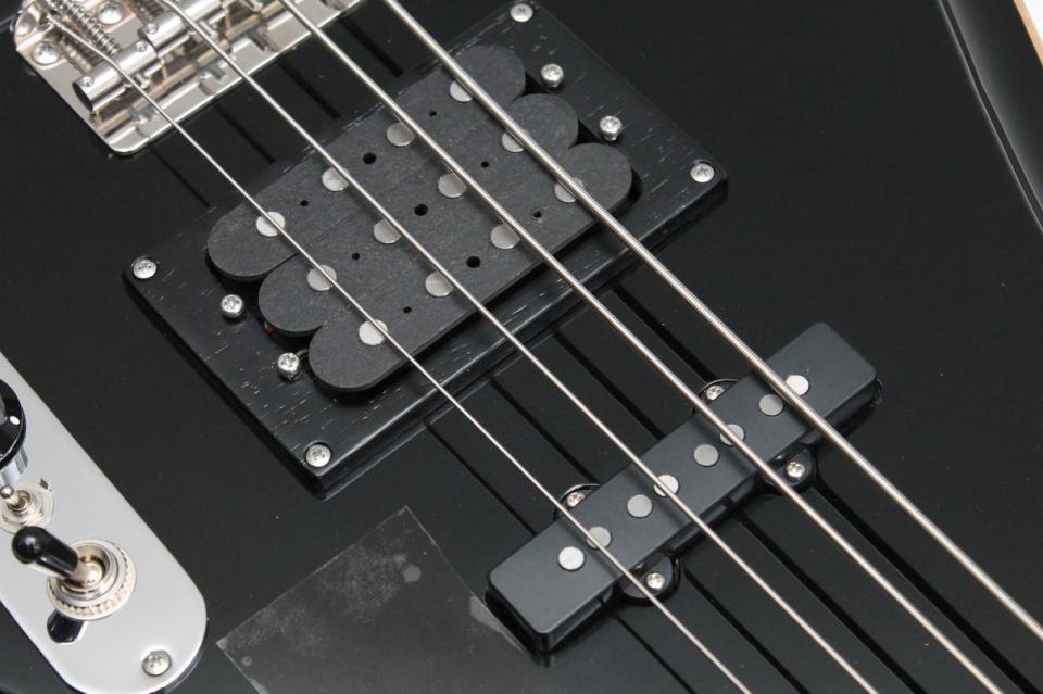 角田氏の提唱する新たなピックアップ形態3-Coilはそれぞれのシングルコイルをスイッチングにより様々な配列で組み合わせることで非常に幅広いサウンドメイクが可能。もはや今までの常識を打ち壊すような多彩なトーンが魅力ですが、出てくるサウンドは決して奇をてらったものではなくどのポジションも””使える”パンチの効いたベースサウンド!(もちろんスイッチングによりなかなか攻撃的な音も出せます)