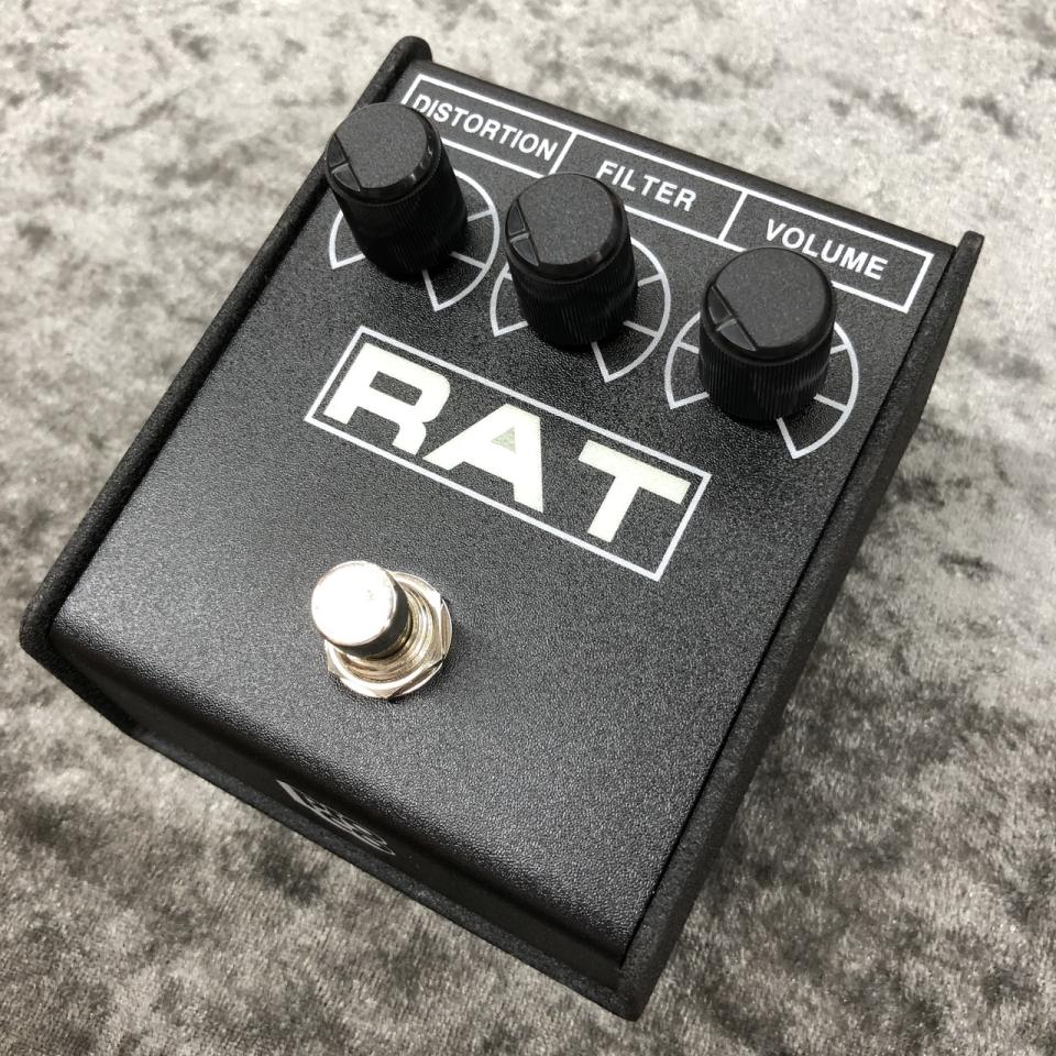 「RAT2」は次世代のRATペダルの始まりでした。筐体は以前の形と同じですが、シルクスクリーンのロゴは”Lexan/Mylar”の暗闇で光る蓄光加工になり、オン/オフが視覚的に確認できる赤色LEDも追加されました。2003年、RAT2にもTurbo RATに採用されていた傾斜の掛かった筐体が使われるようになりました。