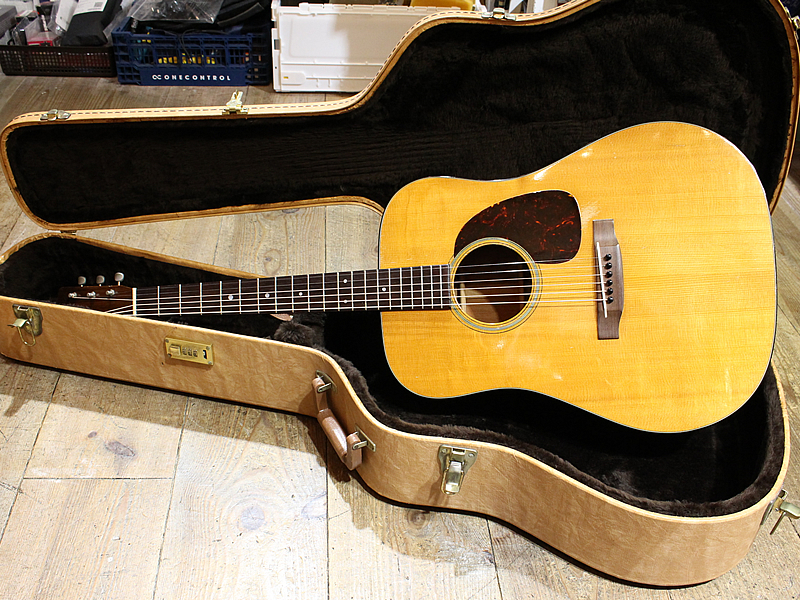 ◆1958年製造。MartinのD-18です。18シリーズは当時のラインナップの中でもリーズナブルな位置に属しますがマホガニーの柔らかで繊細なサウンドに魅せられるギタリストも多く、玄人好みのモデルともいわれたり。高級材の方が音が優れているとは一概には言えないエピソードですね。それぞれの材に優越ではなく、個性があり、アコースティックギターは特にそれが顕著に表れると思います。