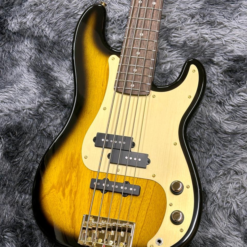 アッシュボディにローズ指板、Pスタイル5弦にPJピックアップ、2連ポットを採用してパッシブでありながら多彩なコントロールが可能です。アノダイズドピックガードとゴールドハードウェアとの組み合わせが秀逸で・・・