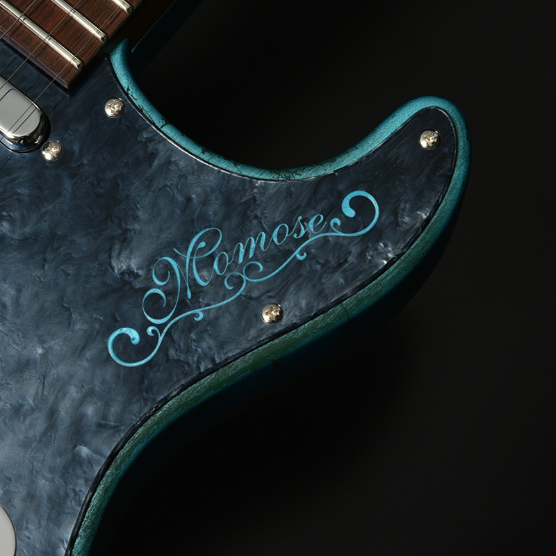 ピックガードのロゴも特殊で、アクリルピックガードにレジンを流し込んだ特別仕様のロゴを採用しています。