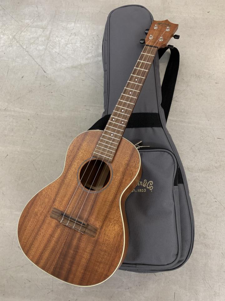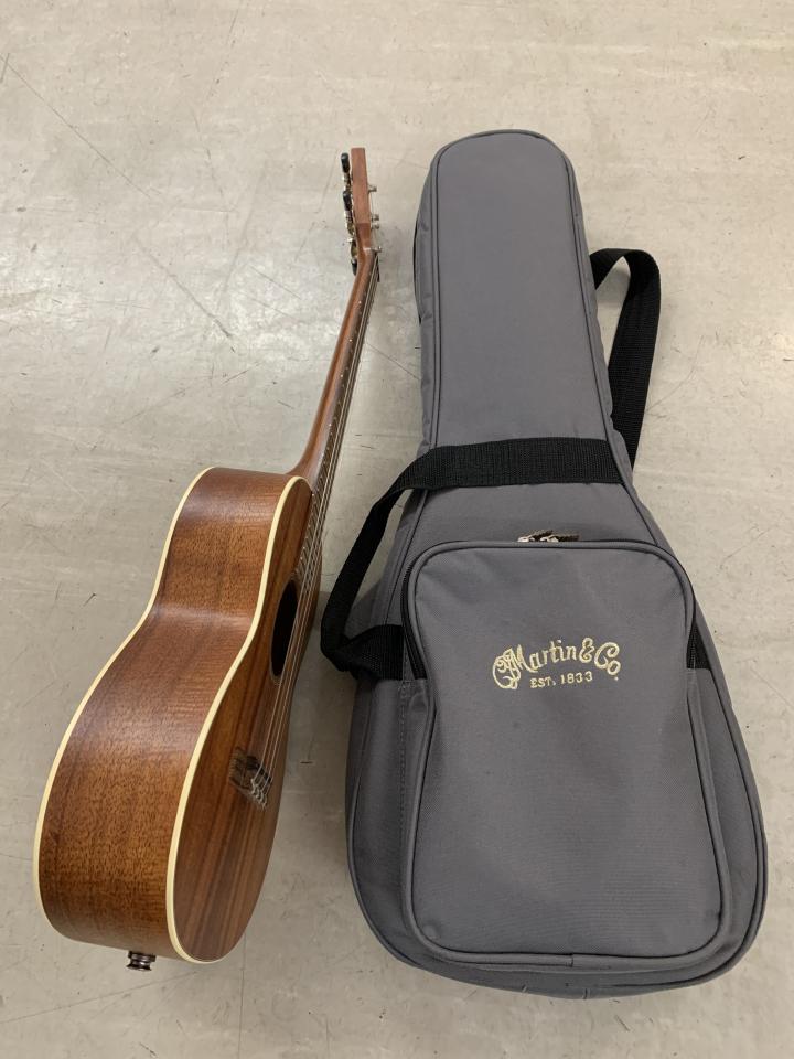 希少モデルの Martinテナーウクレレです。多少の弾き跡は見えますが かなり美品の1本です。充電式の Misi ピエゾピックアップ付きで ライブでも即戦力です。写真のギグバック、ピックアップ充電器などが付属します。