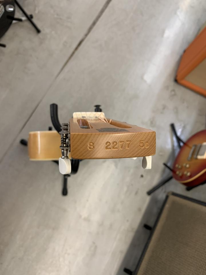 メイプルボディー、スロテッドヘッド、ラウンドネック、スパイダーブリッジ、ファンデザインカバープレート、デュアルスクリーンホールの仕様です。ナチュラルカラー、カバープレートも新品同様の輝きです。